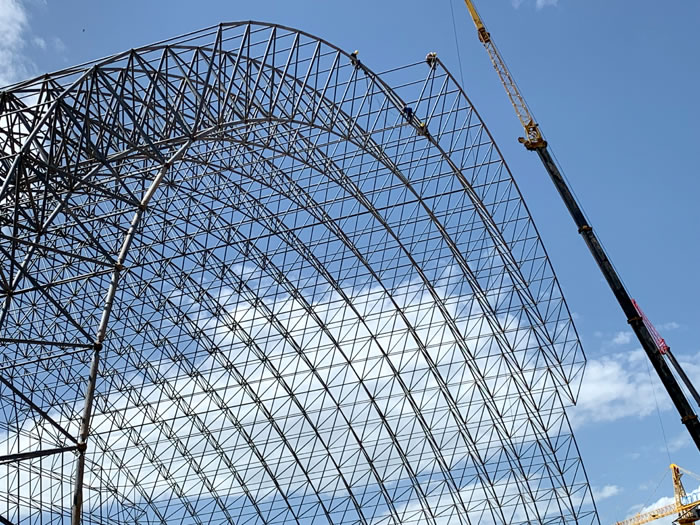 (2)网架加工前应对现场尺寸进行复测,确认无误后方可进行加工、安装;网架制作、运输、安装应遵守《空间网格结构技术规程》JGJ7-2010、《钢网架枣阳螺栓球节点》JG/T 10-2009、《钢网架枣阳螺栓球节点用高强度螺栓》 GB/T 16939-2016、《枣阳钢结构枣阳工程枣阳施工规范》 GB50755-2012、《枣阳钢结构枣阳工程施工质量验收标准》 GB50205-2020。
